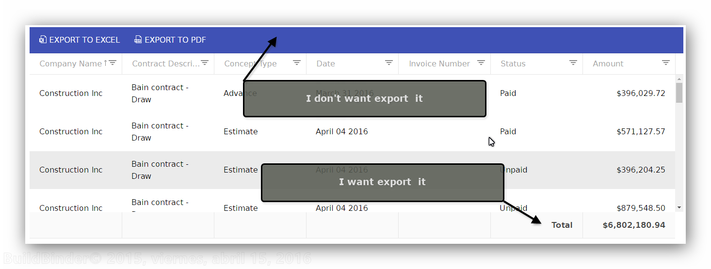 I want export information from a Grid mvc to PDF without the tool bar but with the Client FooterTemplate, because, I have the total amount about all rows here