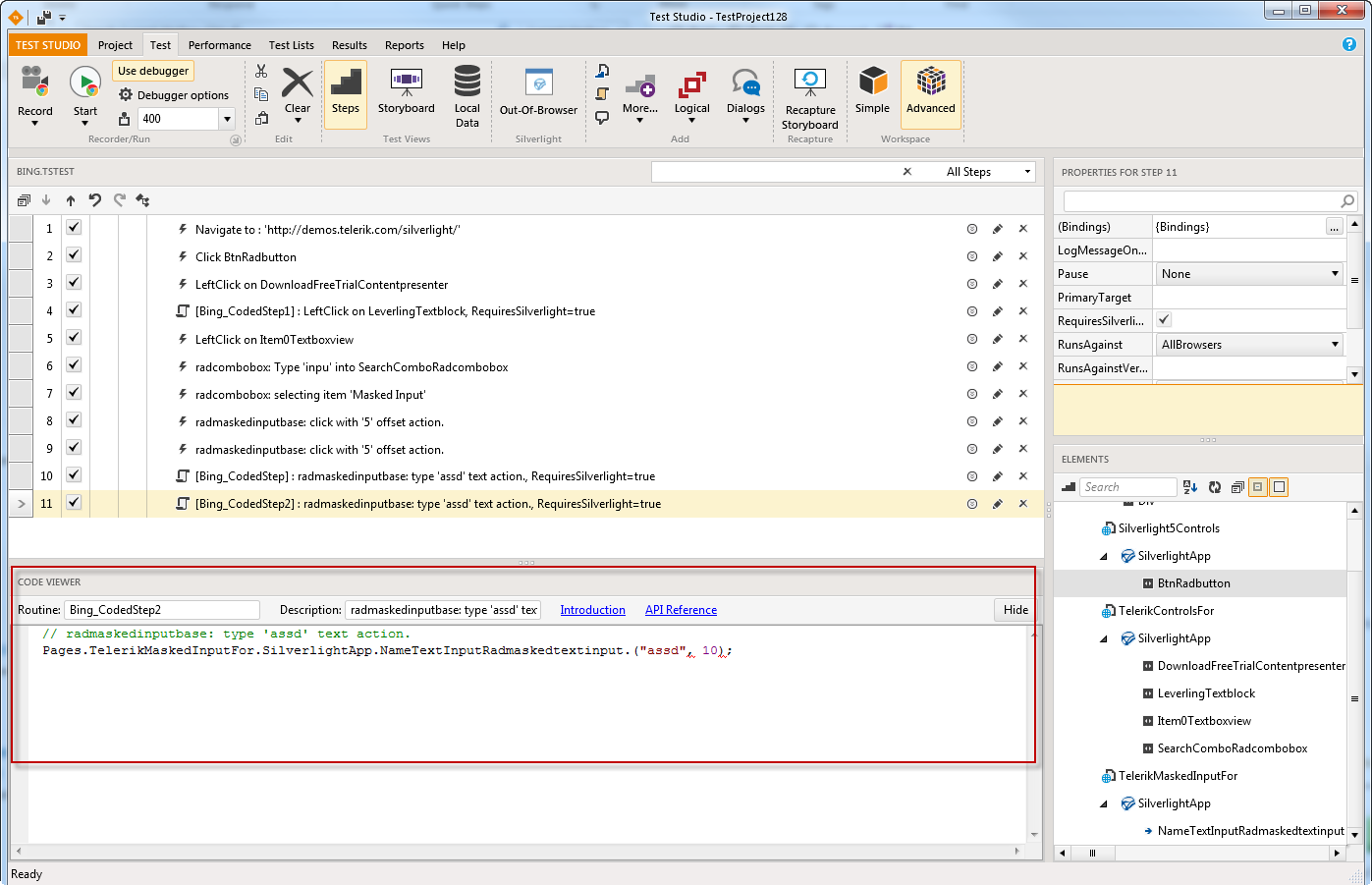 When you customize the step in code, it appears at the bottom part of Test Studio (code viewer).