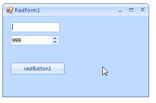 private void radSpinEditor1_Enter(object sender, EventArgs e){ this.radSpinEditor1.SpinElement.TextBoxItem.HideSelection = false; this.radSpinEditor1.SpinElement.TextBoxItem.SelectAll();}0