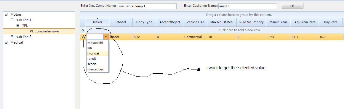 How to access the combobox in the RadGridView to get the selected values or item ?