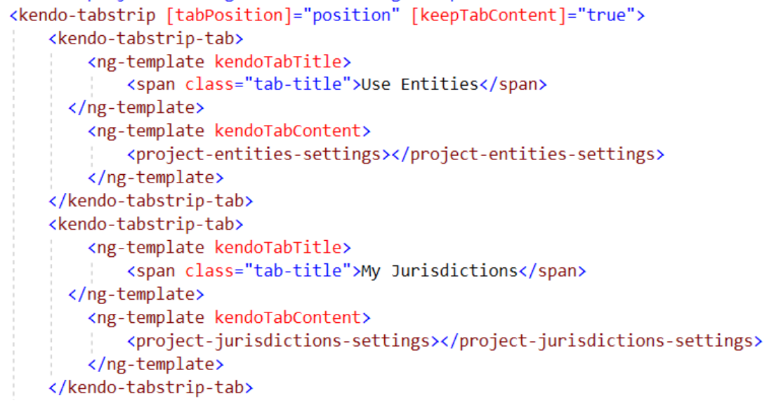 I have implemented kendo-tabstrip and it has different templates for KendoTabContent.