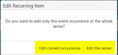 I am just wondering how to access the buttons that allow you to choose either to edit the current recurrence or edit the entire recurrence series. I would like to call a function when one of them is clicked. I have attached a picture of the buttons for your convenience.