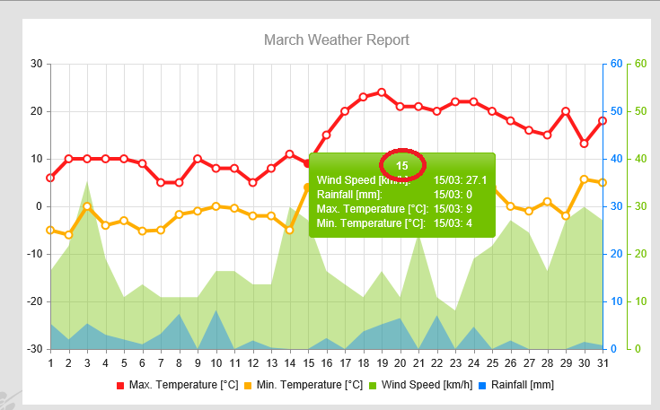@(Html.Kendo().Chart<Kendo.Mvc.Examples.Models.ElectricityProduction>() .Name("chart") //.... .Tooltip(tooltip => tooltip .Visible(true) .Shared(true) .SharedTemplate("#= sharedTooltiptemplate(points, category) #") )) <script>function sharedTooltiptemplate(points, category) { var currentCategory = category, chart = $("#chart").data("kendoChart"), allCategories = chart.options.categoryAxis.categories; console.log($.inArray(currentCategory, allCategories));}</script>Regards,