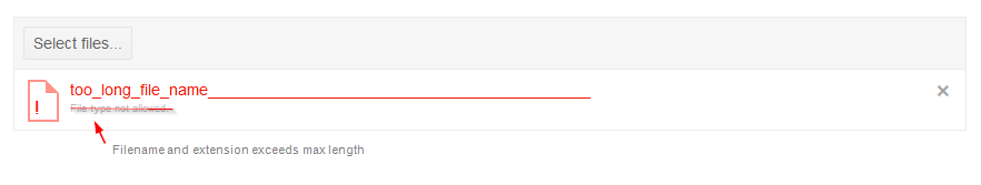 I want to check the uploading filename max length, I could achieve this by checking the uploading filename in the UploadEvent and alert the error message, but I wish to show it in the Upload control like default style (See attached image).