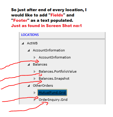 (So when I expand the "Balances" node or "MutualFund" node, it should populate "Fields" as its sub node. So that I can populate list of fields for respective location.)