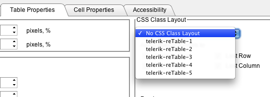 If you wish to modify the functionality of CSS Class Layout dialog review the following online help article: http://www.telerik.com/help/aspnet-ajax/moss_externaldialogspath_property.html. Execute the first two steps then modify the TableBorder.ascx file.