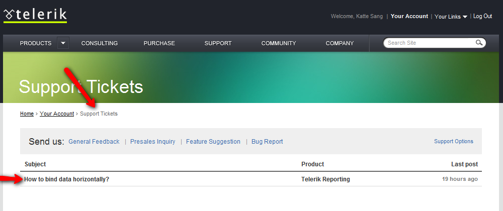 In this line of thoughts we have replied to both your messages, but transformed the “How to bind data horizontally” forum thread to a support ticket as we wanted to ask you for some personal information. You can login to your Client.net account and check/reply to the ticket even now (see attached screenshot).
