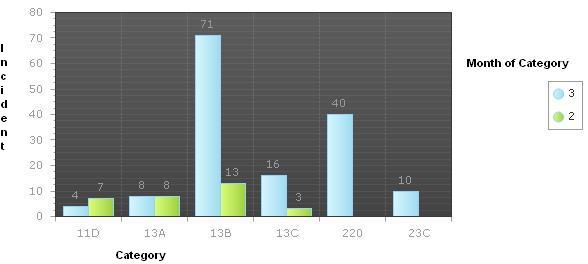 Now, let me describe my doubt. I want to display category on x-axis and incidents on y-axis. I want to display multiple category on x-axis with different colors and its incidents on y-axis(want grouping of category on x-axis and want to display incidents on y-axis same like crystalreport.jpg).