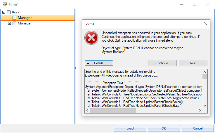when I toggle the tree node , the application throw an expection.