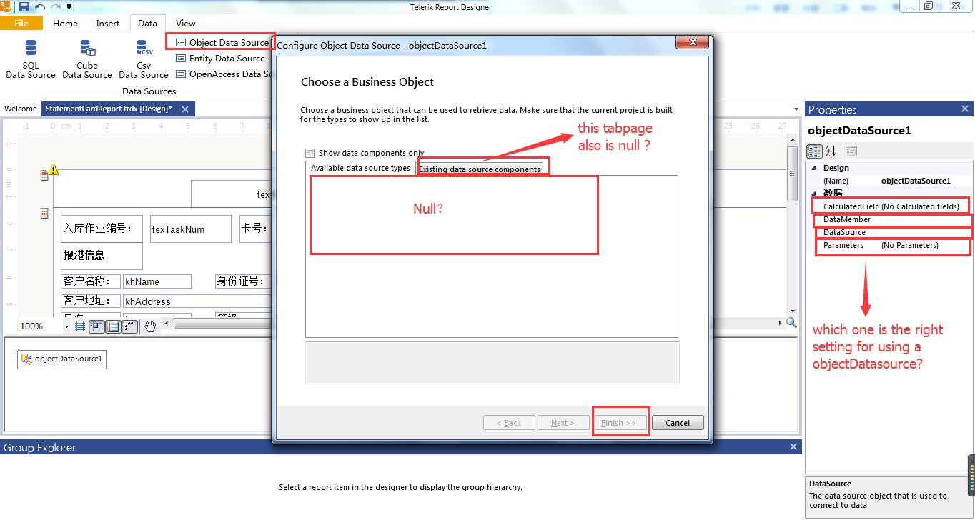 Can anyone give me an example about how to bind the objectDataSource for the Data Source in telerik report ?