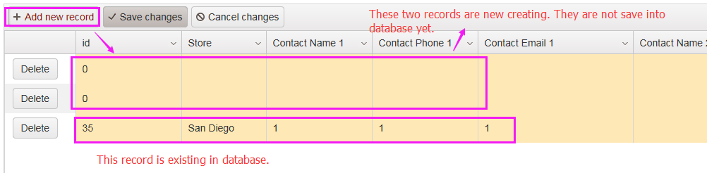 Please refer to pic1, my grid is batch update, I have one record in , then click Add new record button to add two new records but not save into database yet. At this moment, there are three records in grid, then I click the delete button on the third row, it will trigger the create method to transfer the two new records to the backend, this is I don't want, because I have not typed any value, it will get error in my backend.