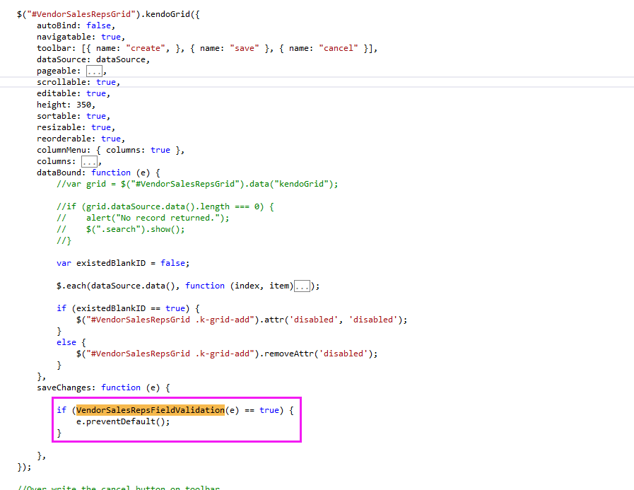 Thanks to confirms it. But I think it is had to setting a validation on the client, refer to Pic2.png I have added the validation method on the Save Change function, but it does not work and send the new create or update data to back-end when running the sync.