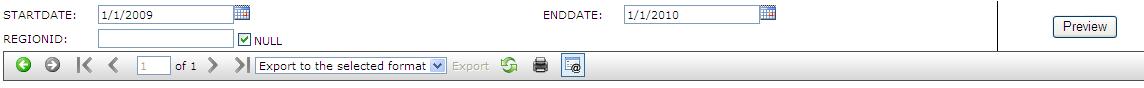 Now, when charting (pie chart) I first want to filter my data, i.e. not all rows from the SP output need to make it to the chart. To do this, I create a Custom report and in the constructor for the report I make the SP call, get the data into a Dataset and then use a DataView to filter out what I want. But bear in mind that the End User can select parameters to run the report (the 2 input params to the SP) and then click the Preview button to pull the data, however in doing so the report just shows the old data, for I have not captured the Preview button click and wired it into my Logic for filtering data.