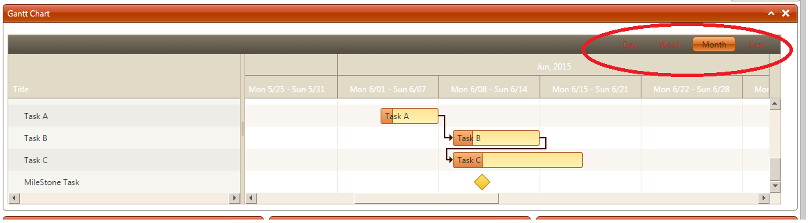 I just want to change color for "Week,Day,Month,Year" buttons to white because its unreadable. I couldn't find any property to change them please find the attached image of RadGantt and here is my code