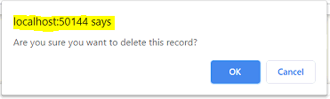 How to get remove title from the Kendo MVC jquery Grid Destroy Command confirmation message ? Please see the attached file. below my grid command. I want to remove "locahost:50144 says" title.