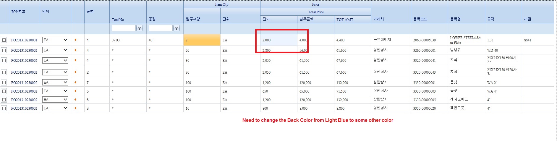 Now when i use keyboard navigation using up down arrow key.The gird selection is moving to next cell but the back color is in Light blue .I want to change the selection back color to some other dark color.