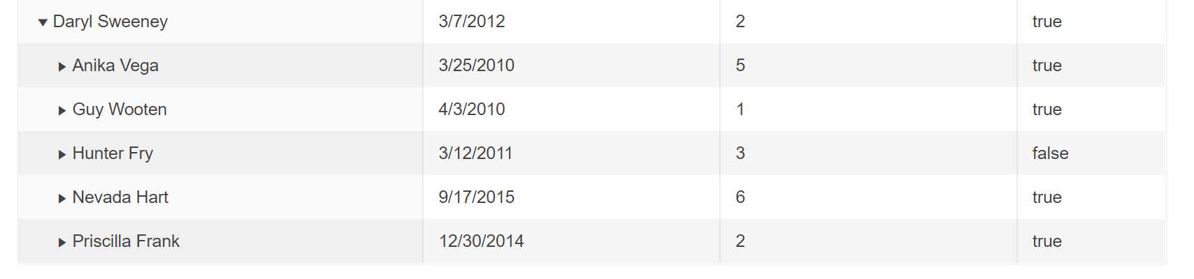 For adding difference between the lines you can use the "props.ariaRowIndex" value, which will give you the row index within the entire TreeList. You can add additional logic for adding some differences in the colors from the previous example if the row is even/odd: