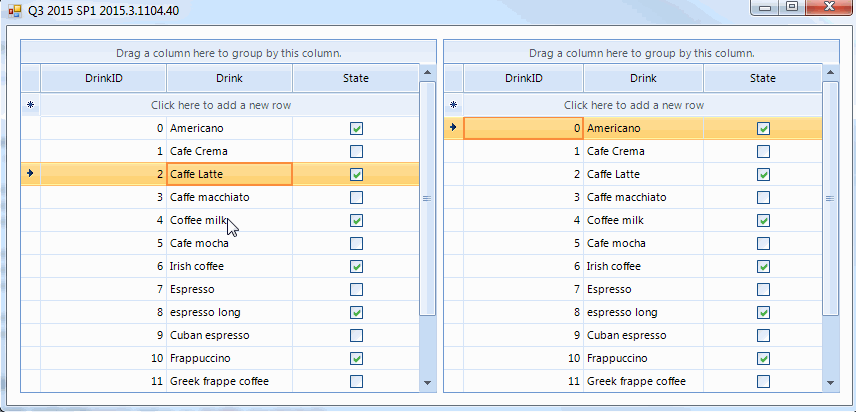 void radGridView1_RowFormatting(object sender, Telerik.WinControls.UI.RowFormattingEventArgs e){ if ((int)e.RowElement.RowInfo.Cells["MyCount"].Value == 100) { e.RowElement.DrawFill = true; e.RowElement.GradientStyle = GradientStyles.Solid; e.RowElement.BackColor = Color.GreenYellow; } else { e.RowElement.ResetValue(LightVisualElement.BackColorProperty, ValueResetFlags.Local); e.RowElement.ResetValue(LightVisualElement.GradientStyleProperty, ValueResetFlags.Local); e.RowElement.ResetValue(LightVisualElement.DrawFillProperty, ValueResetFlags.Local); }}In order to prevent applying the formatting to other columns' cell elements all customization should be reset for the rest of the cell elements when use events like ViewCellFormatting, ViewRowFormatting, CellFormatting, RowFormatting.