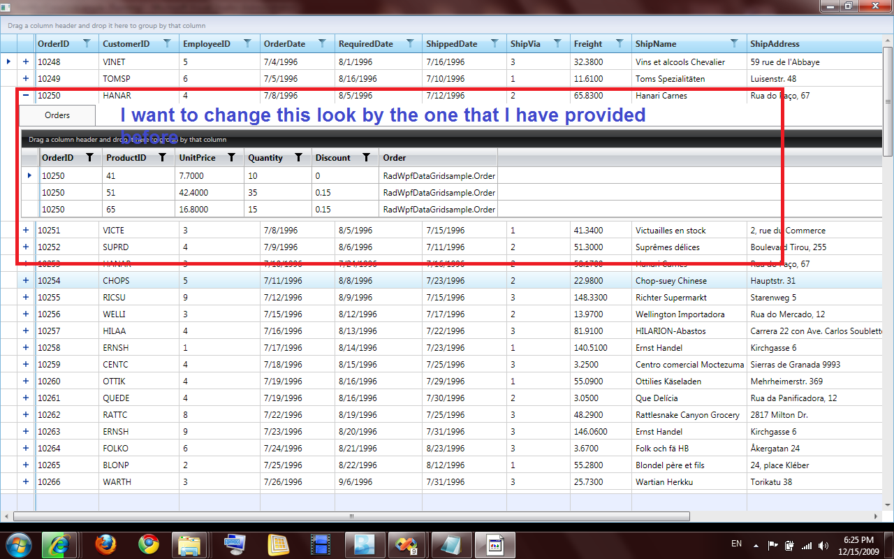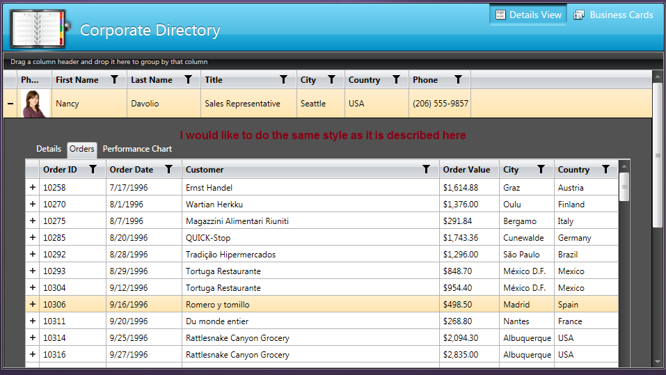 | <Telerik:RadGridView ItemsSource="{Binding MasterRecord.Data.Orders}" /> |