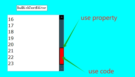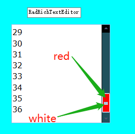 Hello everyone, I have successfully changed the scroll bar color of the RadRichTextEditor control. However, no matter how I try to set and modify the color of the button on the scrollbar, it remains white. How can I achieve this? Thank you.