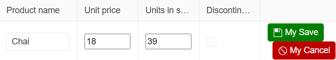 Hi, Marc, thank you for letting me know that you would like to update the buttons that are shown when the row is in edit mode. If the styling is applicable only to the CSS and not for the rendering, I could recommend using the following selectors: