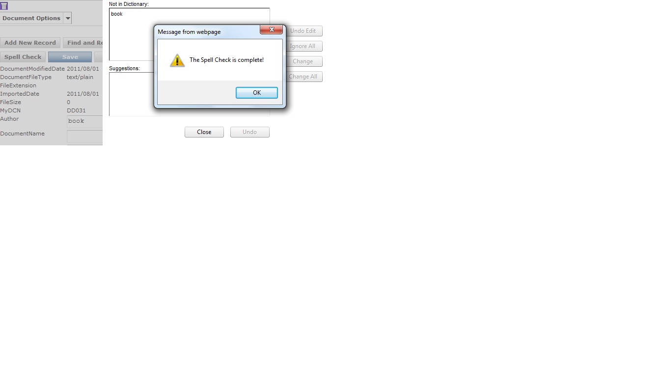 When reaching last incorrect word in 'Not in dictionary' section in spell check window, on clicking the incorrect word the user is able to edit that wrong value. After editing that value the message will come as 'Spell check is complete'. On clicking the [Spell check] button again Spell check window dispalying with the edited value in "Not in dictionary " column and showing the mesage as "Spell check is complete"