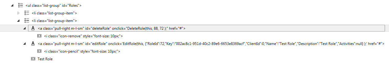 The script will loop through the list and find 'Test Role'. At this point, it needs to click the delete link associated with this item. My current script always clicks the delete link for 'A role', which is the first one in the list. I cannot figure out how to make it click the delete link for 'Test Role'.