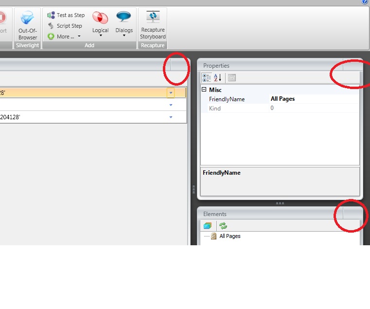 Your screen show also implies you expect there to be a "Close" icon on the Steps, Properties, and Elements Panes. There is not. These are static in the Standalone version and can only be resized by dragging the vertical and horizontal "three dots" between panes.