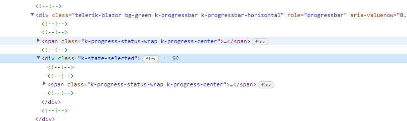 <TelerikProgressBar Value="@model.Progress" Class="@defaultClass">...</TelerikProgressBar>