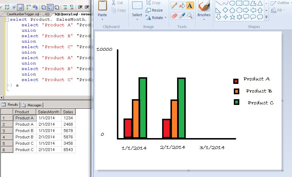 Please see the attachment for a picture of the data from an SQL data source, and the simple chart I'm trying to build.