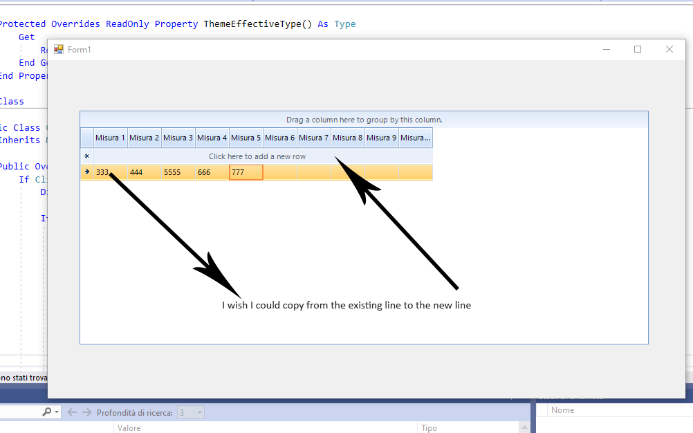 Me.RadGridView1 = New CustomGrid()I attached a project in VB for your reference. When using Ctrl+ C/Ctrl+V key combinations you will be able to select a row and paste it into the new row as demonstrated in the gif file from my previous post. Note, that this is a sample example and may not cover all possible cases. Feel free to modify or extend it in order to best fit your scenario.
