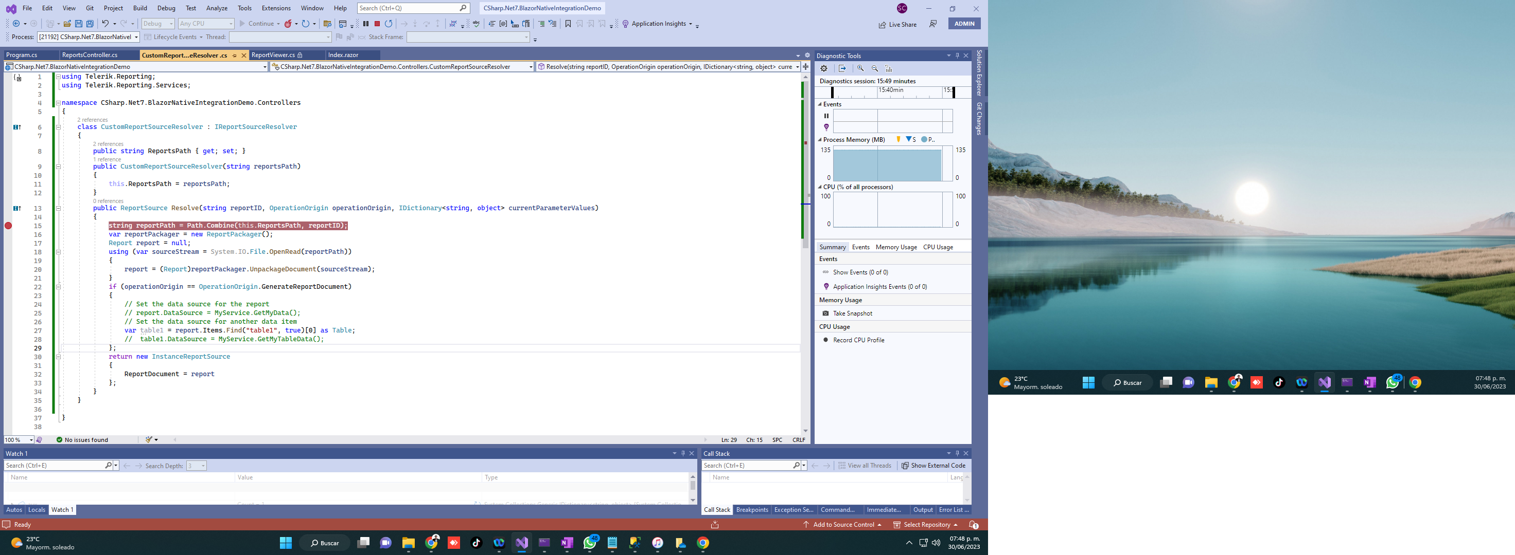 I need to implement a custom report resolver that will return an instance report source as the report source.