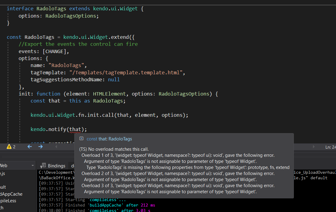 What happens if you not use const that = this as RadoloTags; Instead use const that = this;