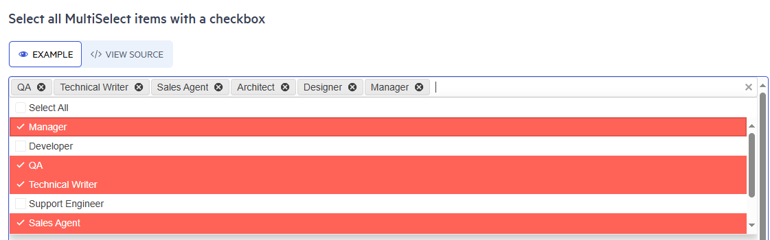 The equivalent Blazor demo is more cluttered as selections showing in the select box: https://www.telerik.com/blazor-ui/documentation/knowledge-base/multiselect-checkbox-in-dropdown