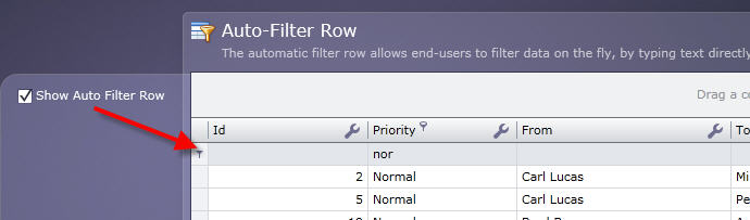 Is there something similar in GridView as in DevExpress DxGrid with the property ShowAutoFilterRow="True"?