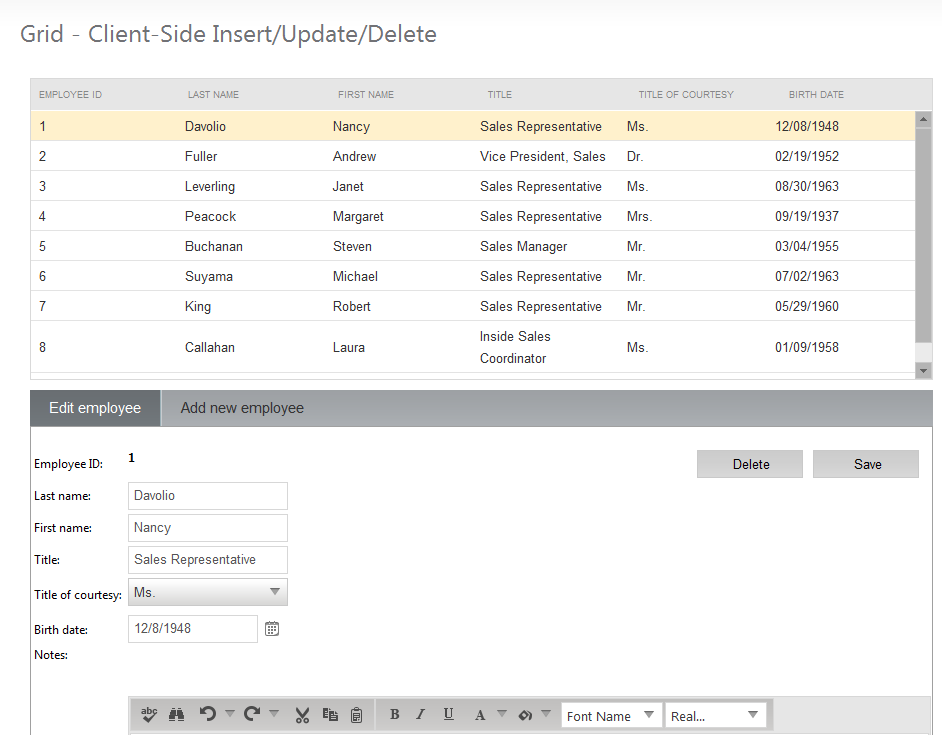 I am new to KendoUI MVC .... I want to do create a Kendo UI MCV grid just like Telerik Grid demo : Client-Side Insert/Update/Delete