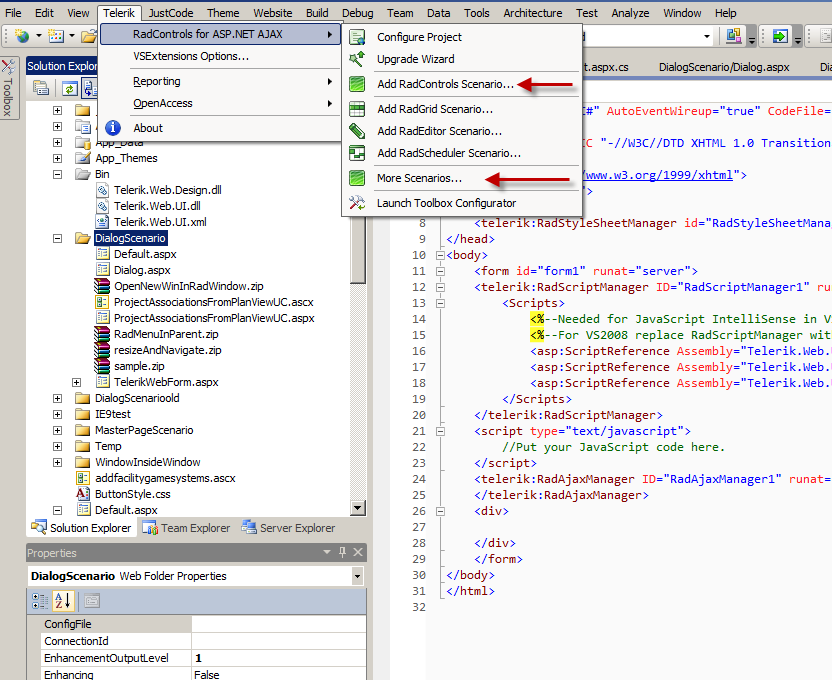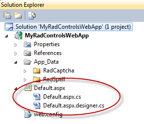 If one opens the markup for default.aspx, the 'boilerplate' code for all the Telerik AJAX 'stuff' is apparent: