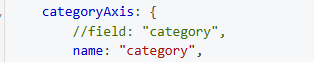 The exception is because the axis named "category" isn't found. You changed it to field in your dojo. If you change it back, as in