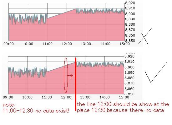 In my chart , the data is from 9:00-15:00 ( stock data), with STEP=1 ,but between 11:00 and 12:30,there no data...