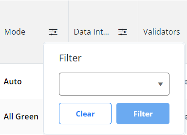Currently there are only 5 options for the filter cells: text, boolean, numeric, date and disabled filtering for the column - in order to define a custom filtering option you need to implement a custom filterCell.