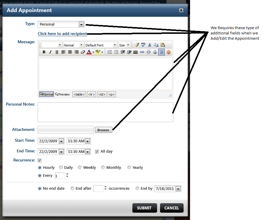 Find the Attachment of Appointment Add/Edit Popup we requires - is it possible to create?.