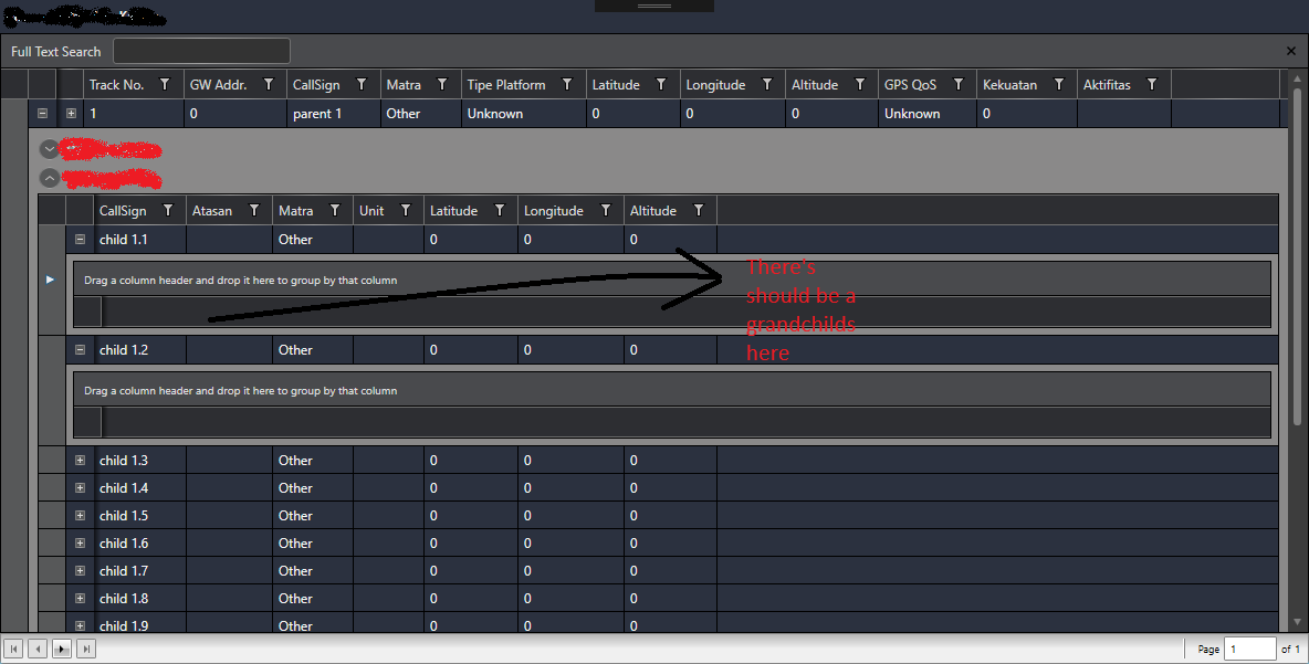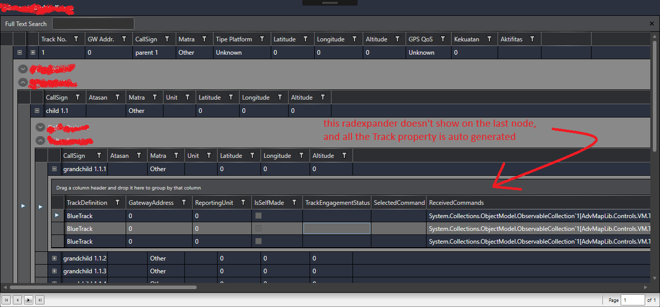 But columns and properties AutoGenerateColumns and ShowGroupPanel are applied only for first child table and second-level table and deeper is not affected by that property.