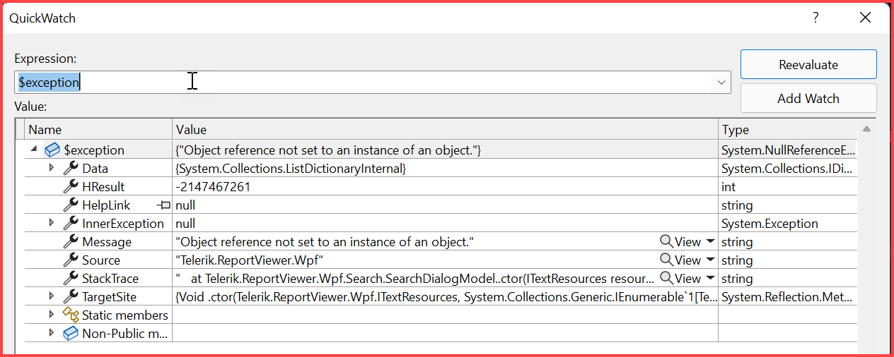 Every time I hit this button, I get a NullReferenceException:
