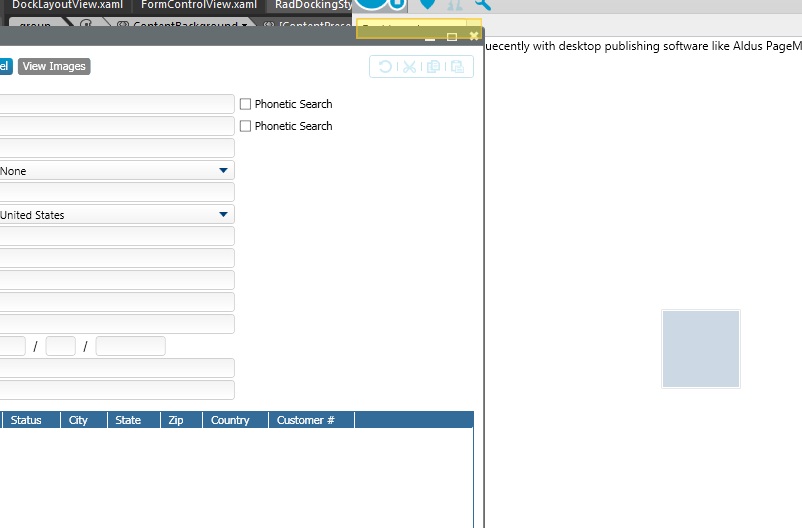 The Property CanDropOnTabStrip is not recognised in my Application. The Solution, I need is that Yellow Region tabs the new Window to the left of yellow region. (i.e) If I already had a tab in main window, and when I drag second window over the TabHeader, The 2nd Window occupies First Tab. I don't need this Tabs to be shifted.