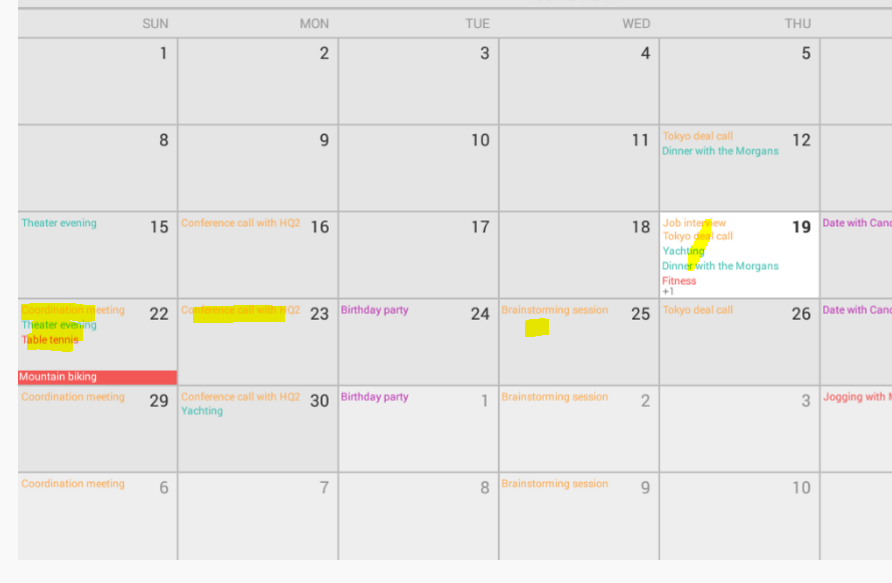 ex: if Movie, Play events will happen on some date[12-05-2015,mm-dd-yyyy] , i have to display these events on scheduled date on calendar control.