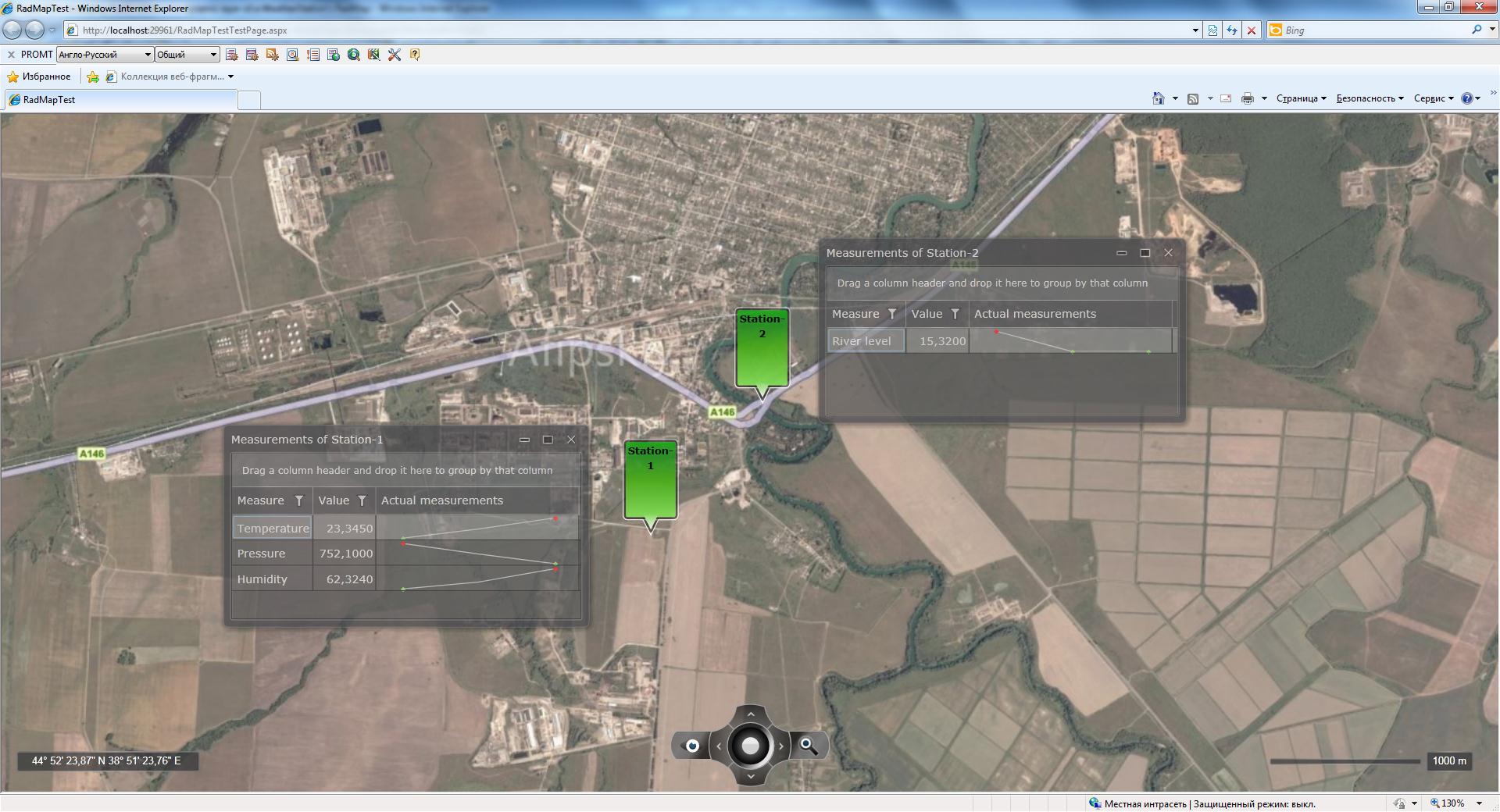 - It is necessary to display indications of several sensors in several RadGridView on a map