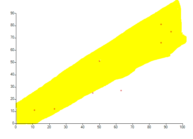 I'm trying to have a range of my chart. The range as a slope of y = ax+b, plus a tolerance for the width of the band.