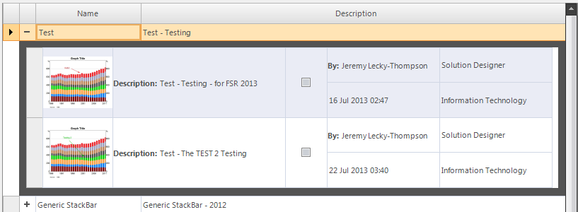 I've attached a screenshot and what I'm doing is possible as its shown here: http://www.telerik.com/help/winforms/gridview-hierarchical-grid-tutorial-binding-to-hierarchical-data.html