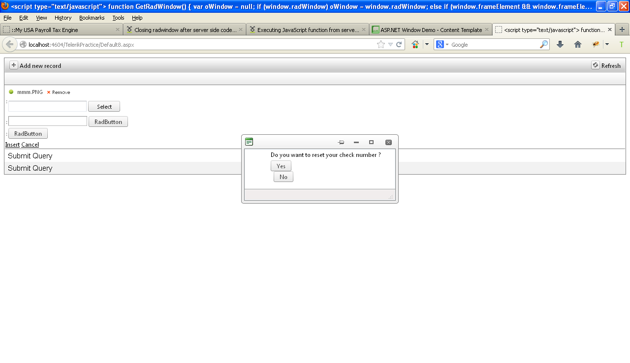 RadWindowManager1.RadAlert("Reset Check Number Not Enter", 300, 60, "Check Details", null);