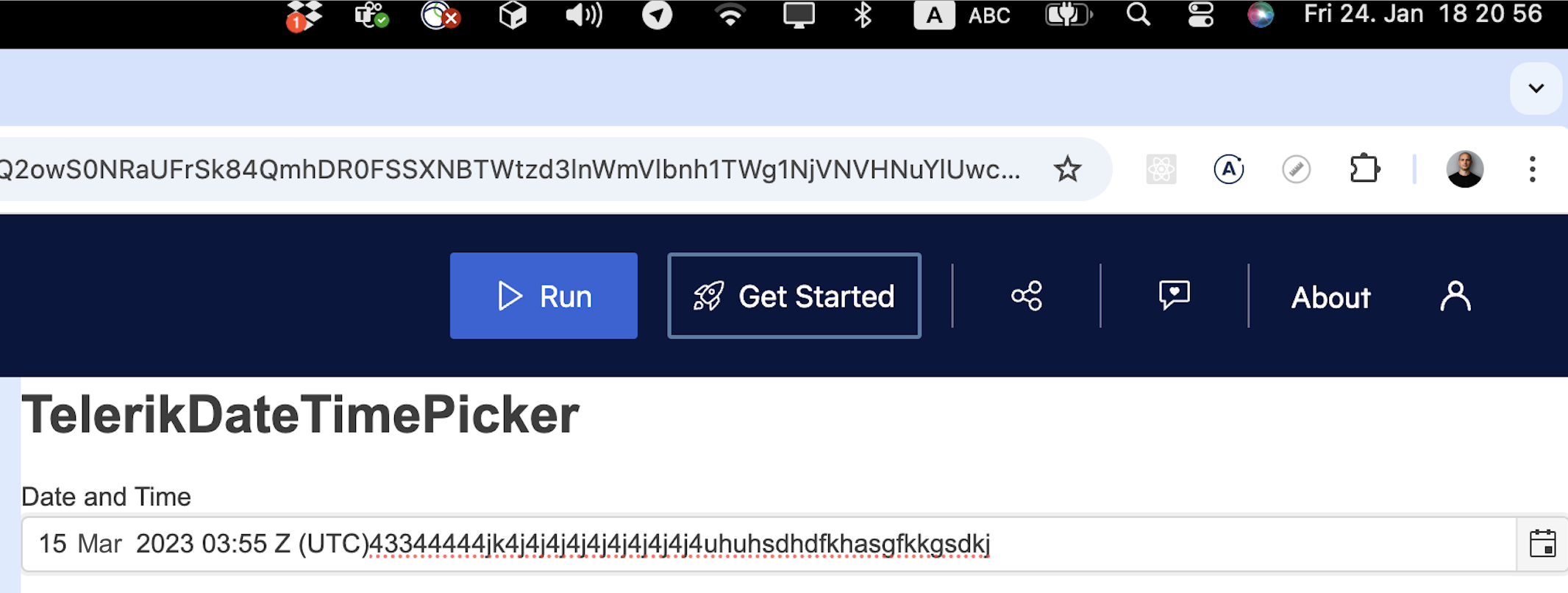 3) After user finishes entering all valid values Date & Time and clicks outside the input field (TelerikDateTimePicker), all entered will be removed.